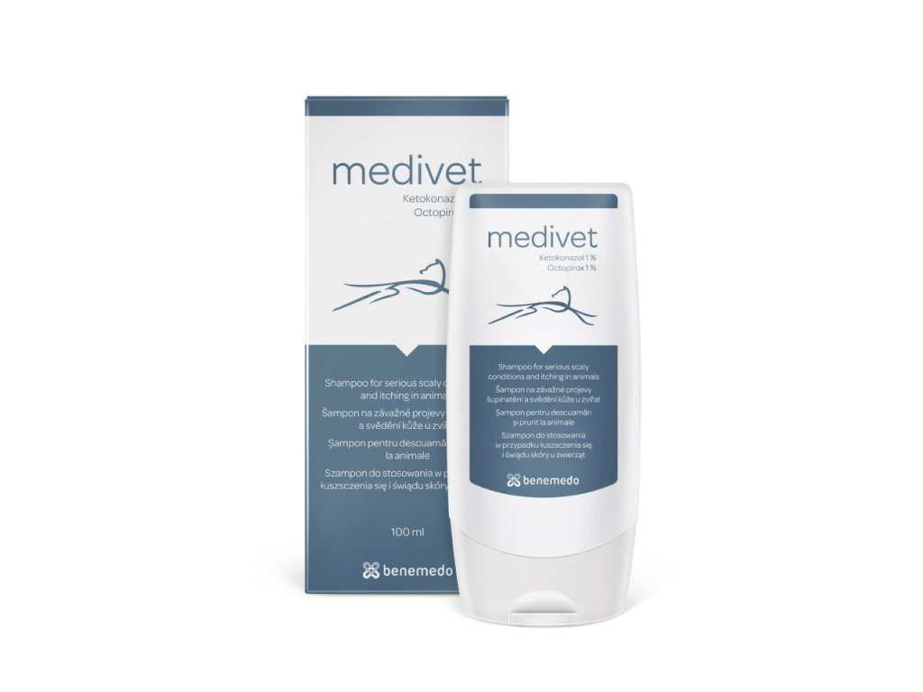 Medivet obsahuje dvě účinné látky: ketokonazol a octopirox. Medivet je účinný v péči o problémovou kůži a srst psů, koček, koní a dalších zvířat.